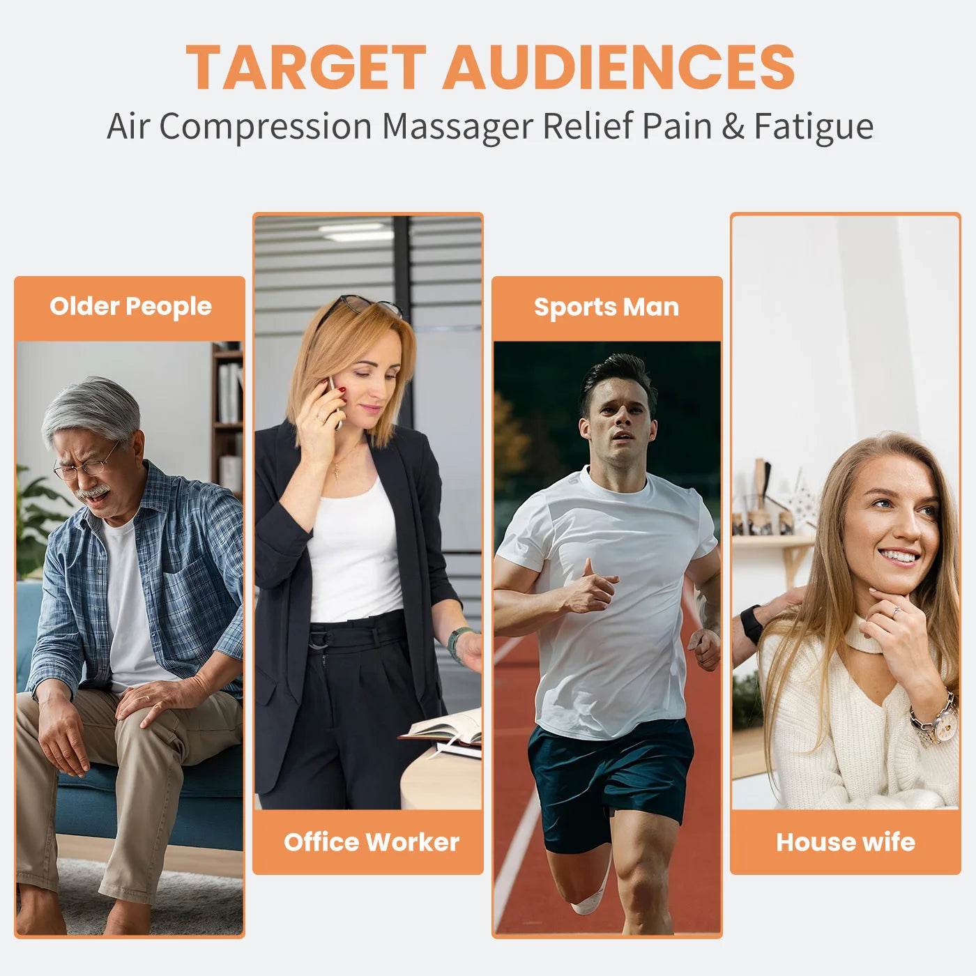 - Target knee and calf zones with adjustable air pressure and cyclic compression, soothing knee joint discomfort while supporting healthier blood flow.
